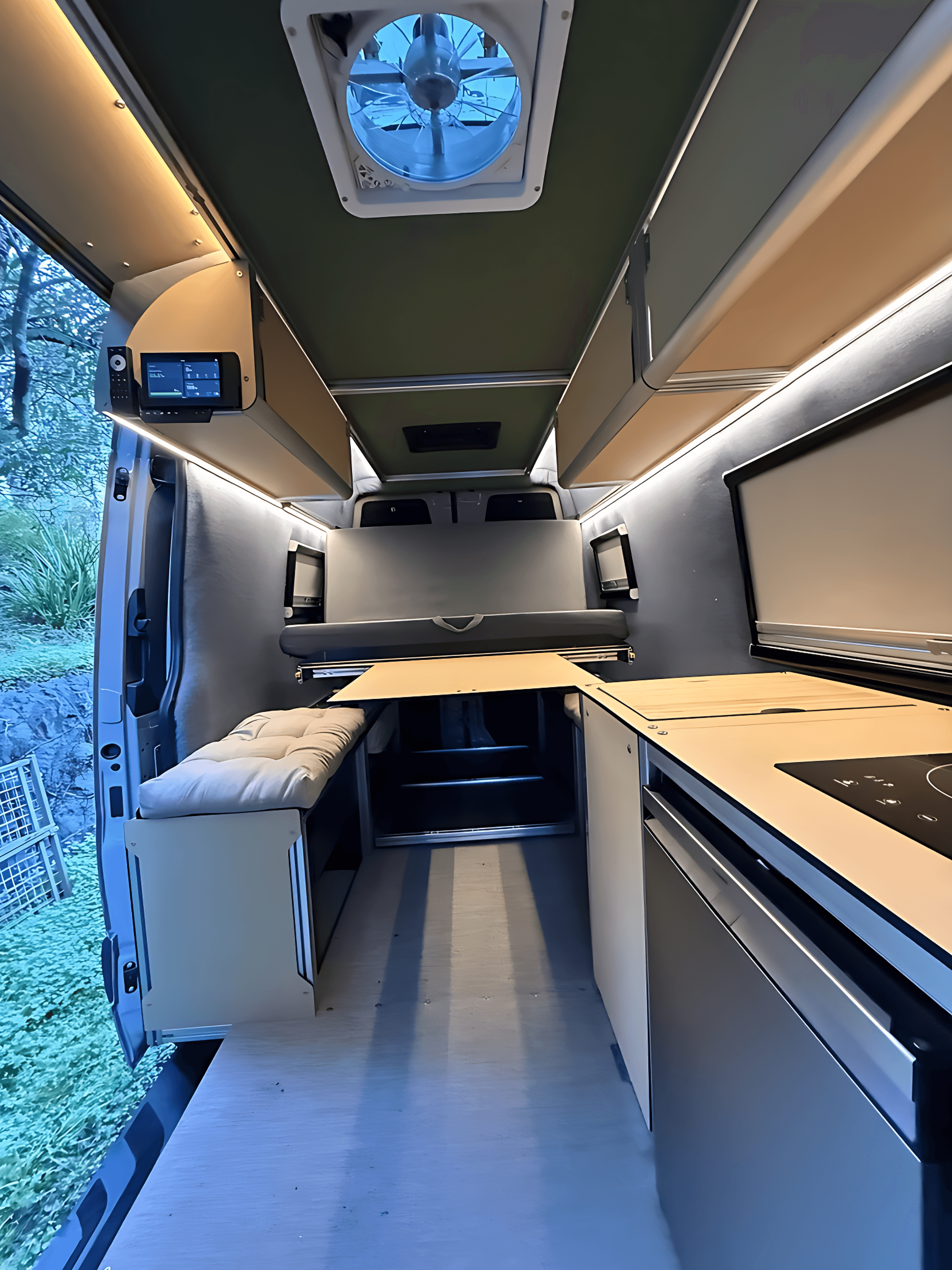 An airy and organic design that features the colors of our earth. Every corner of this van radiates warmth, ease, and intentional living.